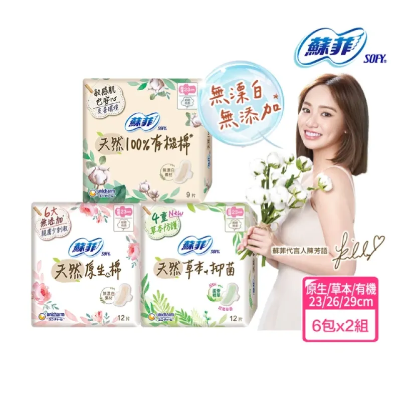 蘇菲 天然系列衛生棉23cm/26cm/29cm(6+6入/組)