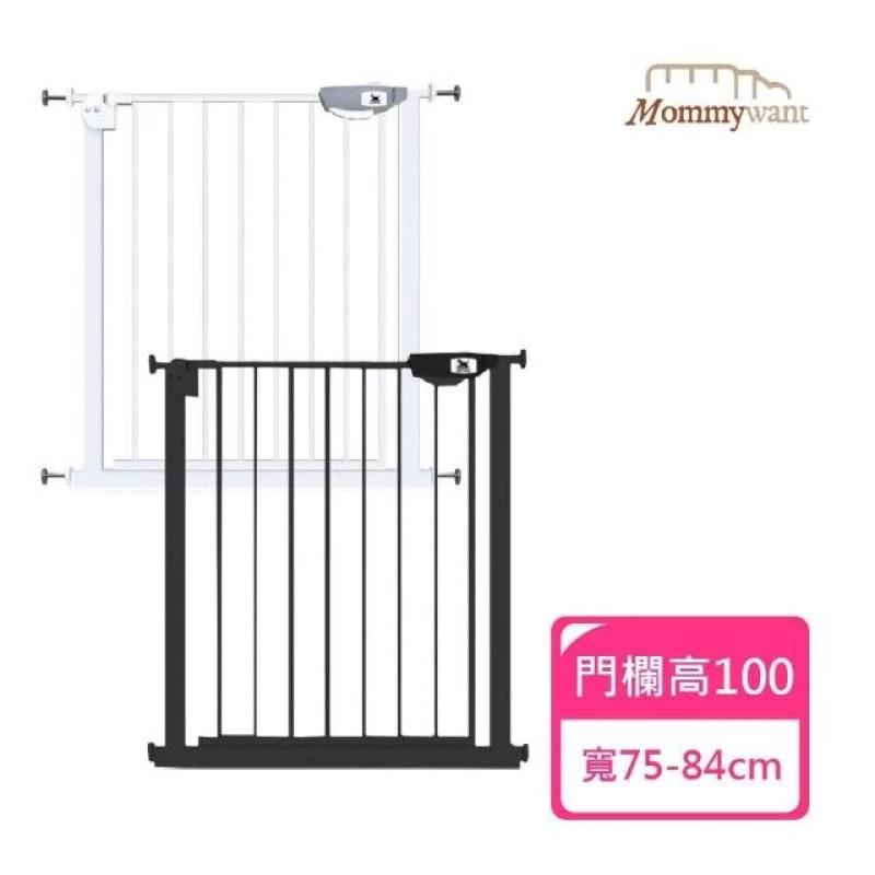 Momm-安全門欄(高100加寬款/無孔安裝/雙向自動回彈/樓梯圍欄/寵物門欄/狗門欄/柵欄/門擋/可延長款)