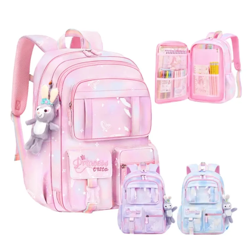 Starshop 冰箱式側開書包 兒童減壓護脊輕量雙肩後背書包 學生書包 女童 1-6年級(國小 開學/生日禮物)