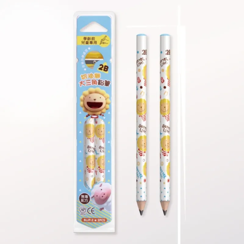 SIMBALION 雄獅文具 BLJP-2 奶油獅學齡前鉛筆2支裝+筆削 2B(3卡1包)